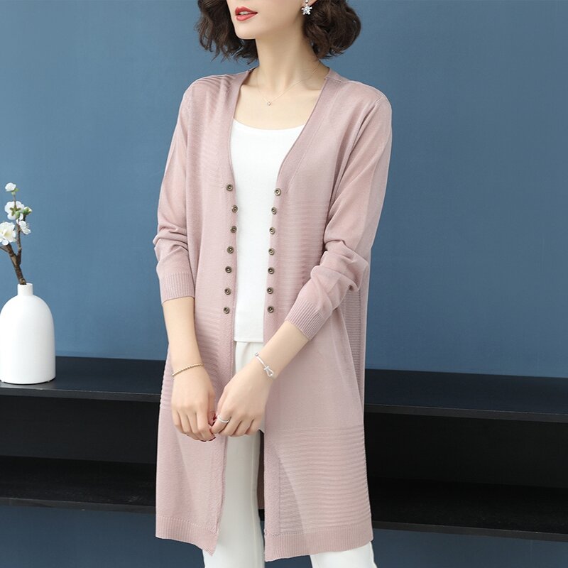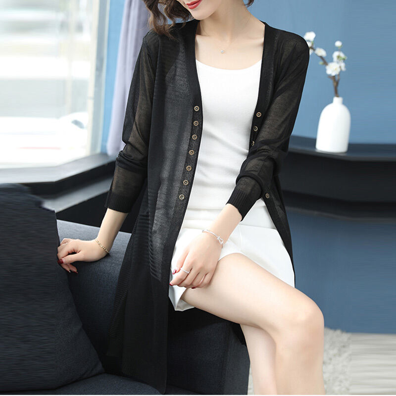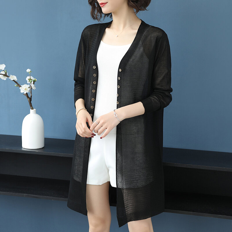 Summer Knitted Cardigan Women's Shawl Thin Shawl Outdoor Cloak Coat Mid-Length Sun Protection Clothing Ice Silk Airable Shirt