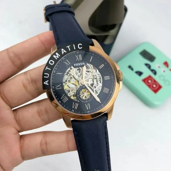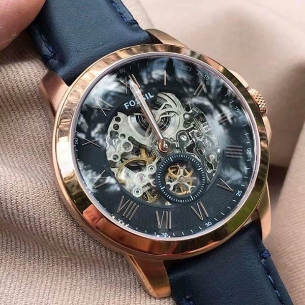 (SG LOCAL) Fossil ME3054 Grant Twist Automatic Skeleton Dial Leather Strap Men Watch