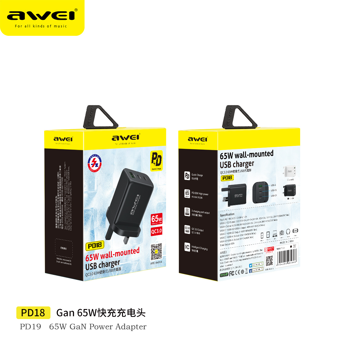 USB-C1+USB -A Output :45W+18W(63W Max)