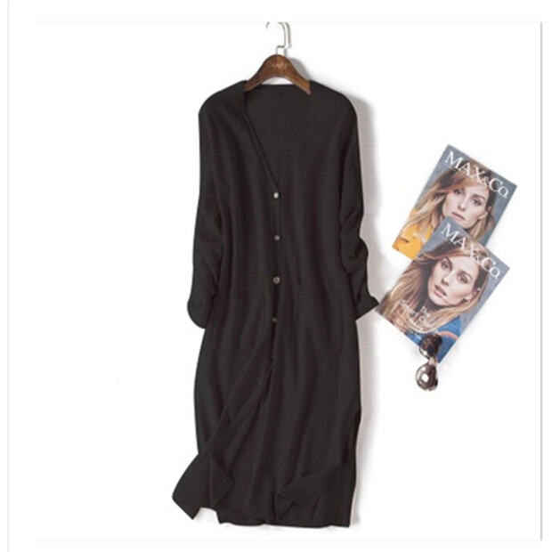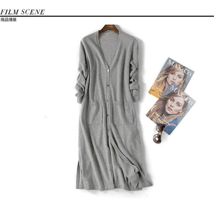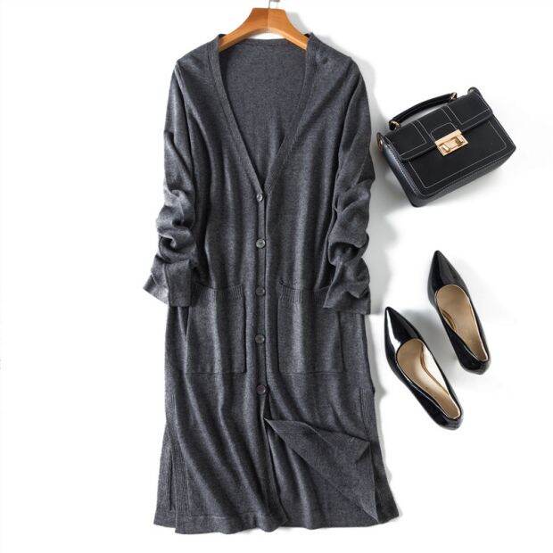 Over-the-Knee Mid-Length Knitted Cardigan for Women Outdoor Spring, Autumn and Winter V-neck Button Sweater Coat Simple and Versatile Loose