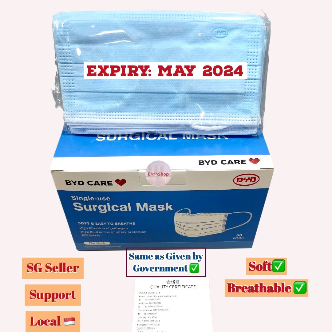 BYD Single-use Surgical Mask Blue - 50 pcs (Same as the ones given by Singapore Government)