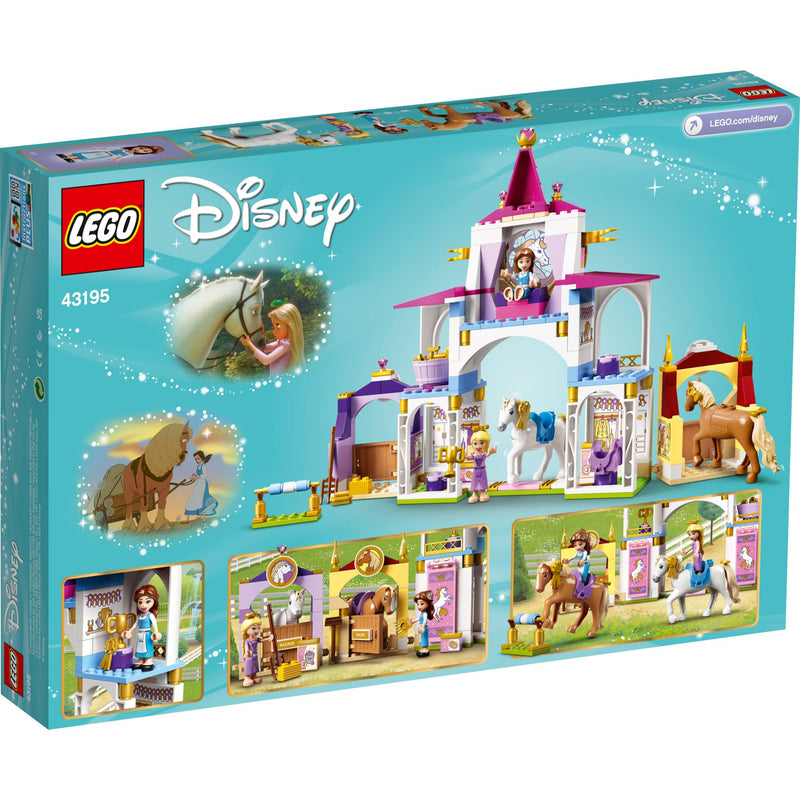 Grab your saddle and head down to the royal stables with Disney’s Belle and Rapunzel to help take care of Maximus and Philippe! Explore the main stable with its trophy and accessory rooms, and cozy attic space for relaxing. Clean up the horses’stalls, put on their saddles and take off. Oh look, a jump. Wheee! After the ride, unsaddle and brush down the horses, then give them some treats! Open-ended creative play Kids will love playing with this set and its accessories, including hay, horse food, saddles, stable tools and a trophy, to help kick-start a child’s imagination as they care for the animals and role-play exciting stories. Beloved characters, ready for fun This creative set gets kids playing with 2 mini-doll figures – Disney’s Belle and Rapunzel – plus rideable Maximus and Philippe LEGO horse figures. This premium Disney Princess gift will be tops, one that all the kidstalk about. Kick-start fun role-play with this LEGO® Disney Belle and Rapunzel’s Royal Stables (43195) set, a different and unique Disney Princess construction gift. Play starts with building and doesn’t end! Inventive adventures await. This creative set features a 3-level stable with 5 rooms, 2 small, detachable stalls, a sticker sheet and plenty of play starters for imaginative fun. 2 beloved characters, Disney’s Belle and Rapunzel, are ready for work and play in this top buildable toy. The awesome kit also includes 2 LEGO® horse figures, Maximus and Philippe. Any Disney Princess fan aged 5 and up will love this set. Kids can create endless stories with this premium gift set that will wow friends and is perfect for hours of imaginative play. Made for play or display. With the stable and connected stalls measuring over 9.5 in. (24 cm) high, 13 in. (33 cm) wide and 2.5 in. (7 cm) deep, this set is made for play and looks cool on a shelf. Want to give kids an even more awesome building experience? Now you can with digital Instructions PLUS! With intuitive modes like zoom, rotate and ghost mode, it’s LEGO® building for the digital age! With detailed mini-doll figures and ridable horse figures, this Disney Princess buildable toy set encourages open creative play, helping to build important skills with lots of fun story starters. LEGO® components meet rigorous industry standards to ensure they are consistent, compatible and connect and pull apart reliably every time– it’s been that way since 1958. LEGO® components are dropped, heated, crushed, twisted and analyzed to make sure they meet strict global safety standards.