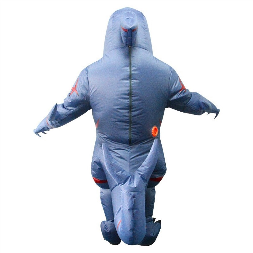 2.【Easy to Inflate and Install】: The inflatable shark clothing is easy to inflate and install. Please tighten the outer ring. The fan can inflate the clothes in 1-2 minutes, while the air pump requires 4 AA batteries (batteries not included) or a power bank. It also gives you a lot of room to walk/move freely anywhere.