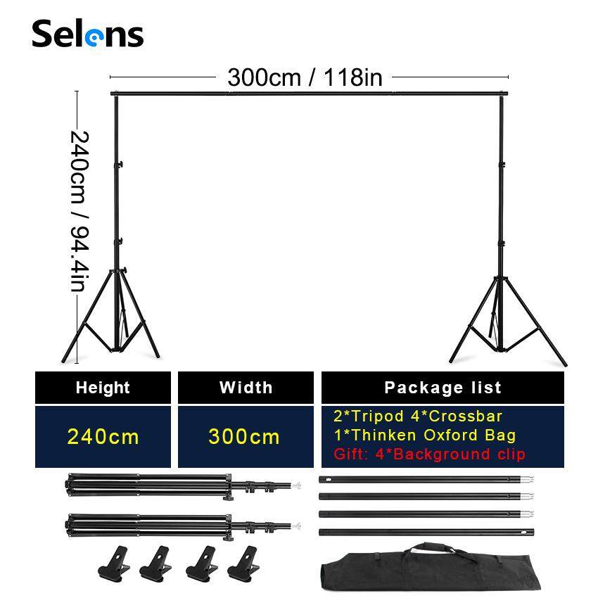 Selens Photo Backdrop Stand Background Stand Backdrop Support System Stand Kit Adjustable Muslin photography Holder light stand For Photography Studio Equipment With Cross Bar Carrying Bag