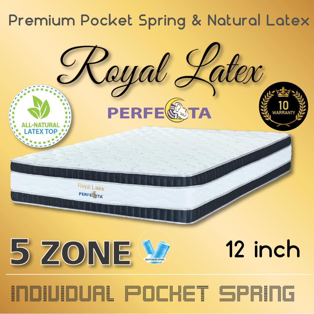 [Bulky] Queen Size - Perfecta Royal Latex 5 Zone Pocket Spring with Natural Latex Top on Euro TOP Design 12 Inch Mattress