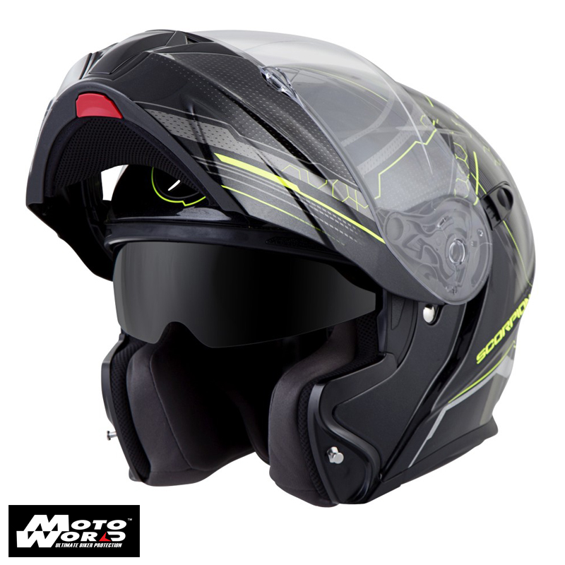 Scorpion EXO-92-211-174 Satellite Modular Motorcycle Helmet Matal Black-Neon Yellow