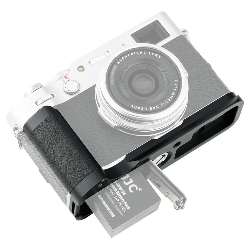 The JJC HG-X100V Camera Hand Grip is designed for Fujifilm X-100V and X-100F. It is made of high quality aluminium alloy, which is sturdy and durable. This kind of metal construction is also a perfect match to the camera body. The hand grip is anti-slip and can provide you with a kind of comfortable hand feeling due to the microfiber leather on its surface. After attaching the hand grip to your camera, you will enjoy a more comfortable and secure hold for your shooting. It allows you to remove your battery and memory card without taking off the whole grip. It also comes with a speaker hole for easily accessing to your camera speaker. The bottom of the hand grip adopts Arca Swiss Type quick release plate design and you can mount this hand grip to Arca Swiss System tripods directly. Or your can mount it to other tripods or devices via the 1/4"-20 tripod socket. Moreover, this hand grip allows you to connect the JJC HS-ML1M hand strap (sold separately).