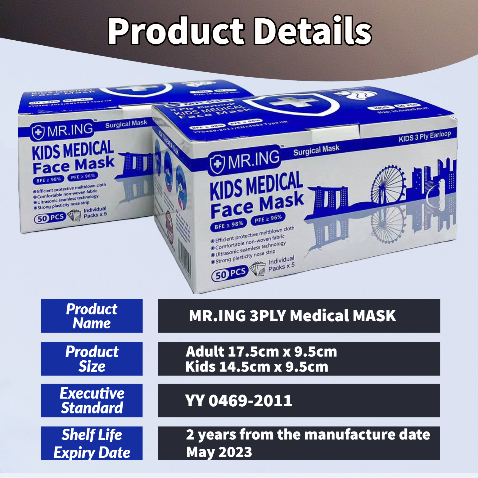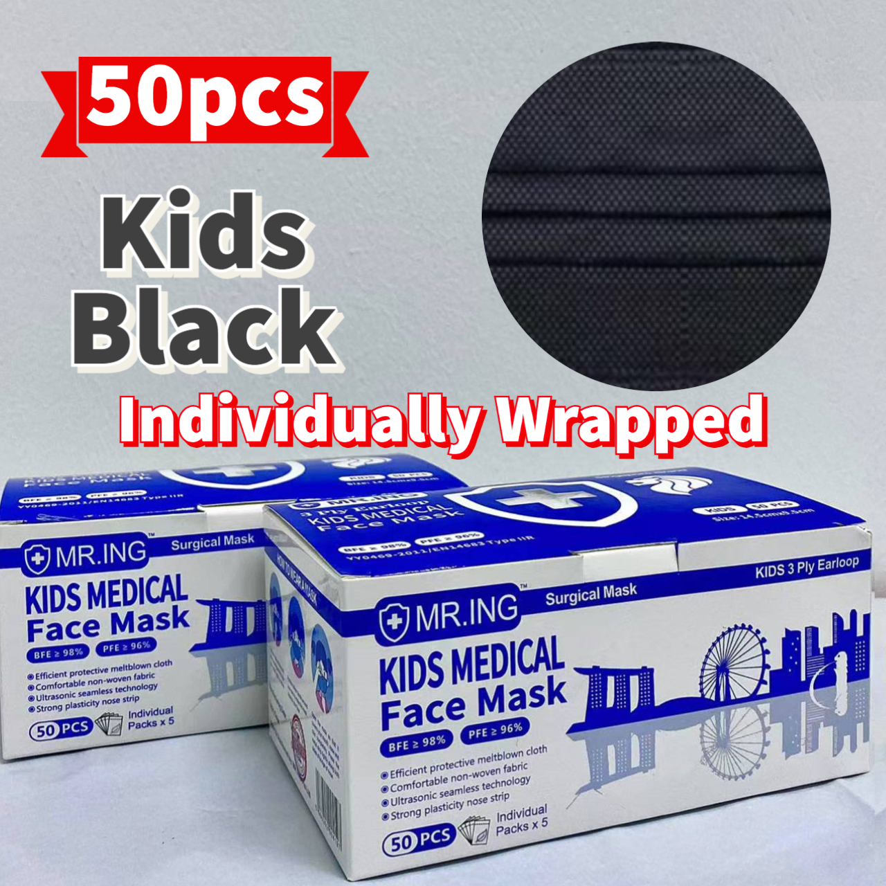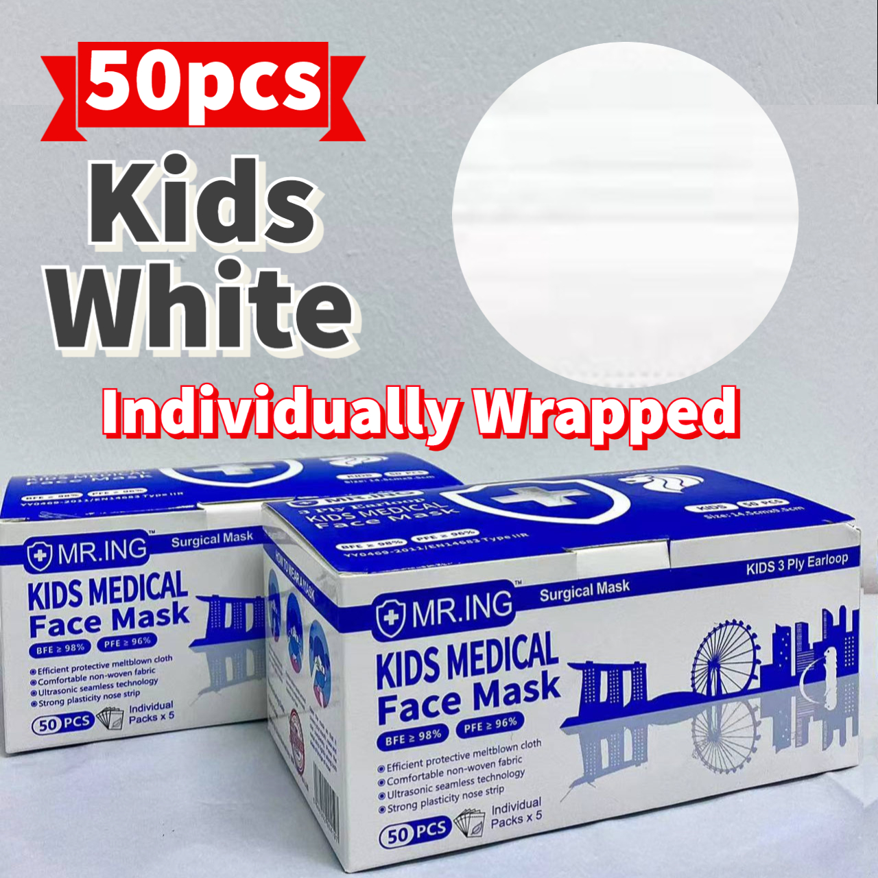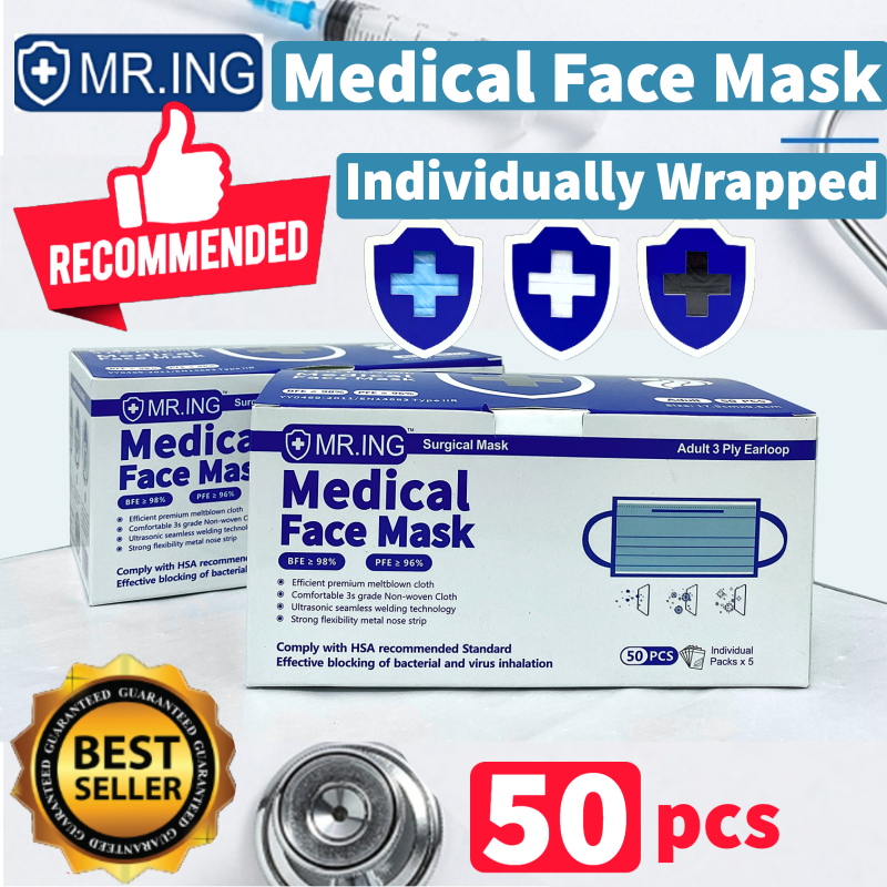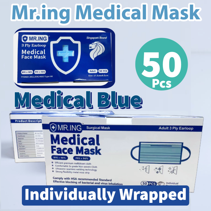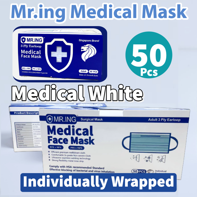 Mr.ING 50pcs 3-ply Face mask Disposable Ear-loop box Medical Grade with CE + FDA High Filtration rate