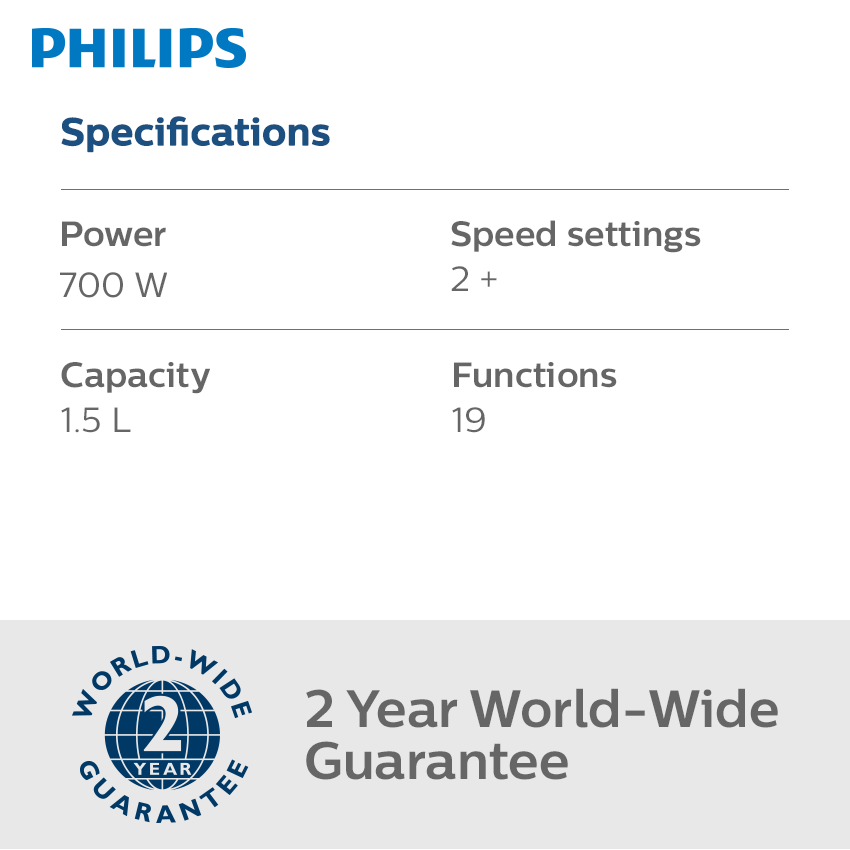 PHILIPS Compact Food Processor 700w 2.1L bowl - HR7320/01