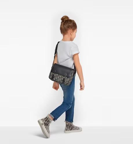 It is made of classic Dior Oblique canvas, and the calf leather is flipped in gold with the "DIOR" logo.