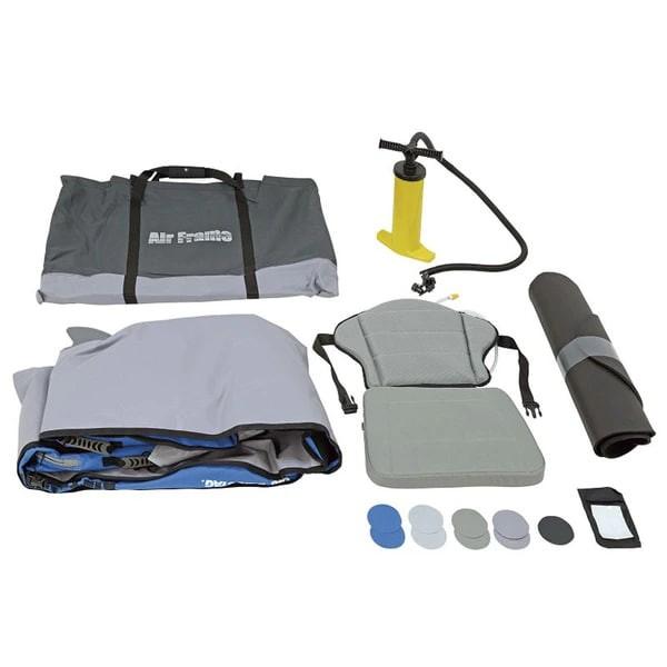 Material: Outer cover deck noodle/polyester (ripstop) PVC vinyl coating, Outer cover side bottom/PVC vinyl + polyester (PVC tarpaulin), Tube cover/polyester (PVC vinyl coating), Inner tube/PVC vinyl, Inside tip/poly plate, aluminum rib