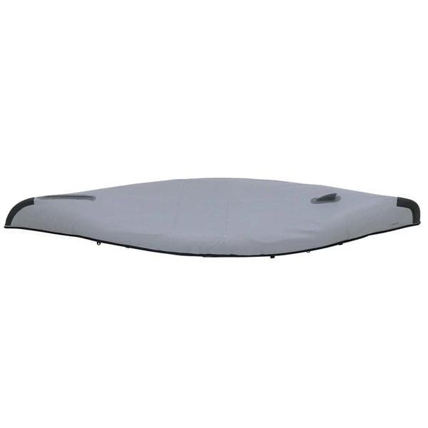 The airframe at the tip and the skeg at the rear of the hull support straight-line stability.