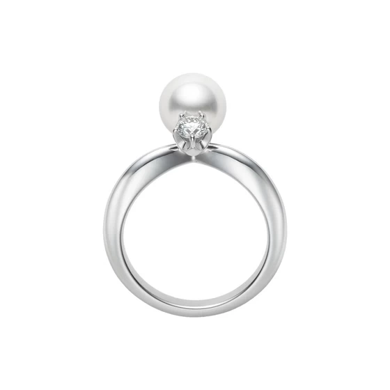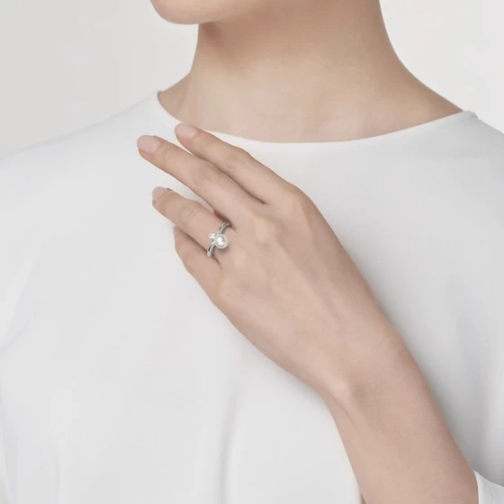 Akoya Cultured Pearl and Diamond Ring in Platinum (Ring Size 7.5)