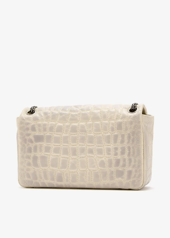 The Clémence bag channels vintage structure with a subversive edge. Quilted to mimic crocodile leather, it features distressed finishes, BB Nano hardware, a bow detail, and layered straps, clashing elements that come together in true Balenciaga form.