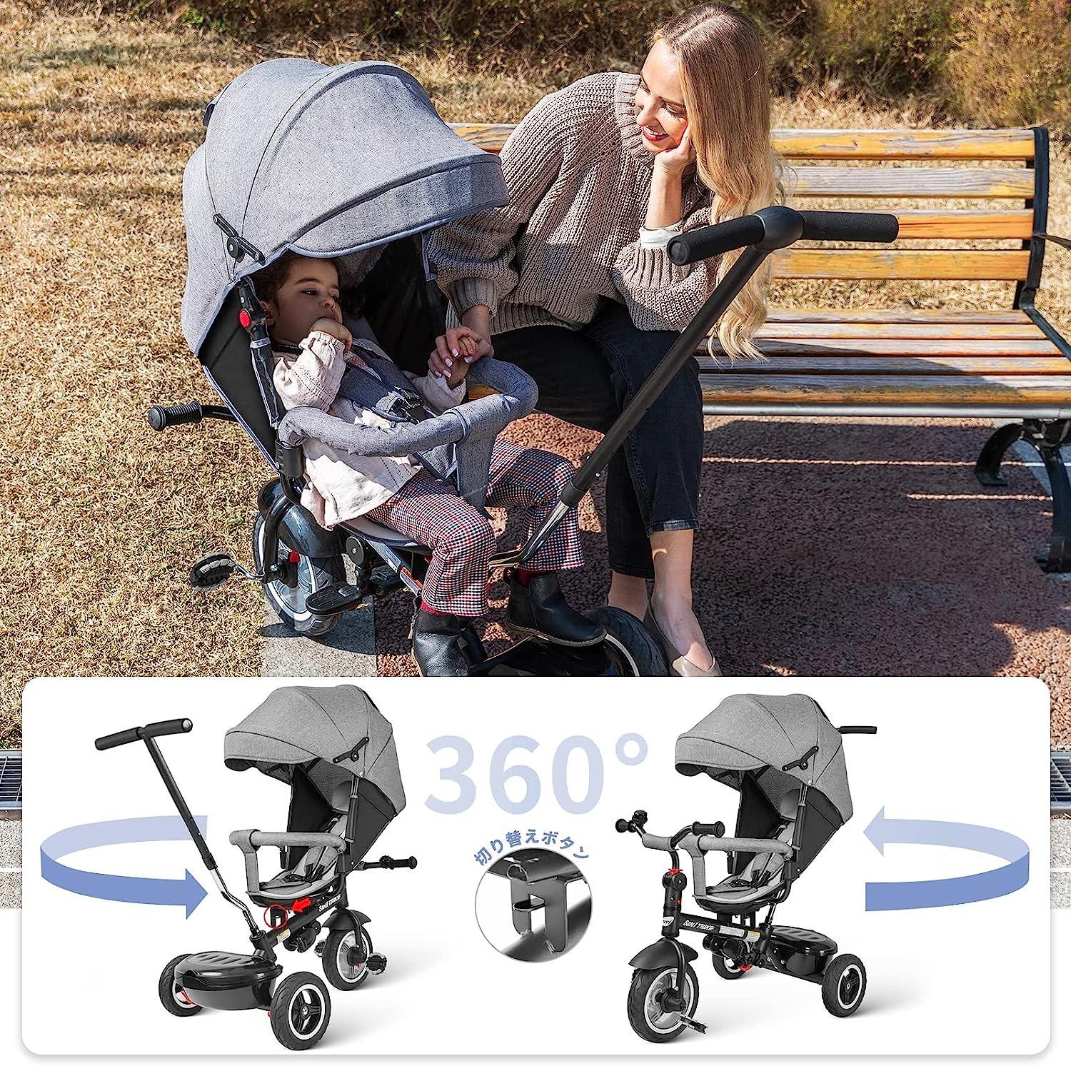 besrey Tricycle Stroller Steering Wheel 8 IN 1 Ride-On Toy 360 Degree Rotation with Safety Belt Brake System for Kids Toddlers Vehicle Toy 12 Months-60 Months Lightweight Storage Basket Hiking Gift Pr