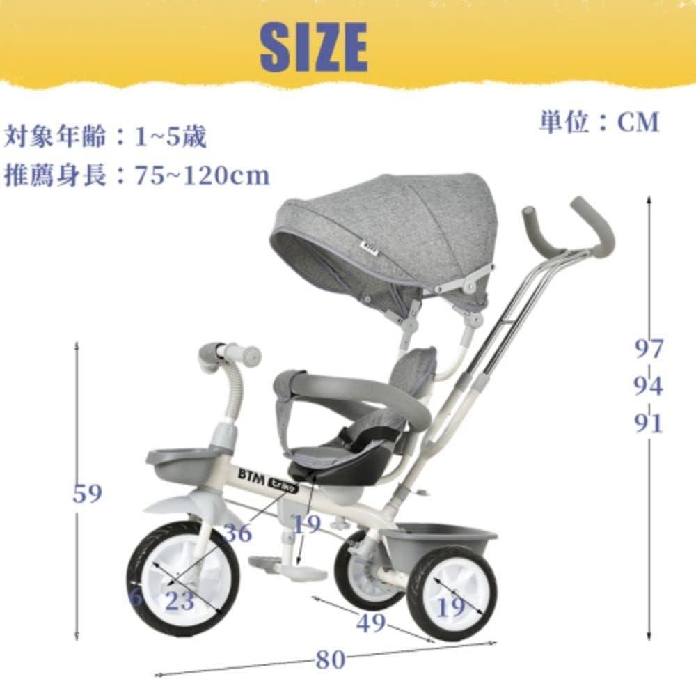 BTM Children's Tricycle, Stroller, Tricycle, Folding, Safety Belt, Stopper, Folding Push Rod, Foot Rest, Control Bar, Handle Adjustment, Ultra Lightweight, Full of Functions, Ride-On Toy, Kids Bike, G