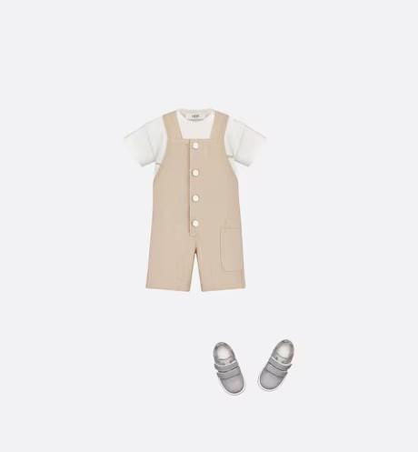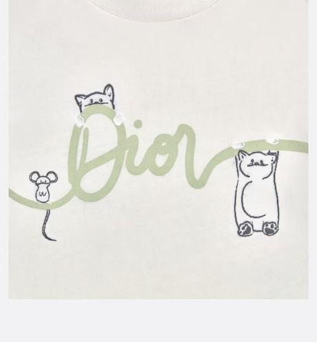 It is made of ivory cotton plain cloth, and on the front there is a re-performed peppermint Dior logo, accompanied by a case of a baby and a mouse.