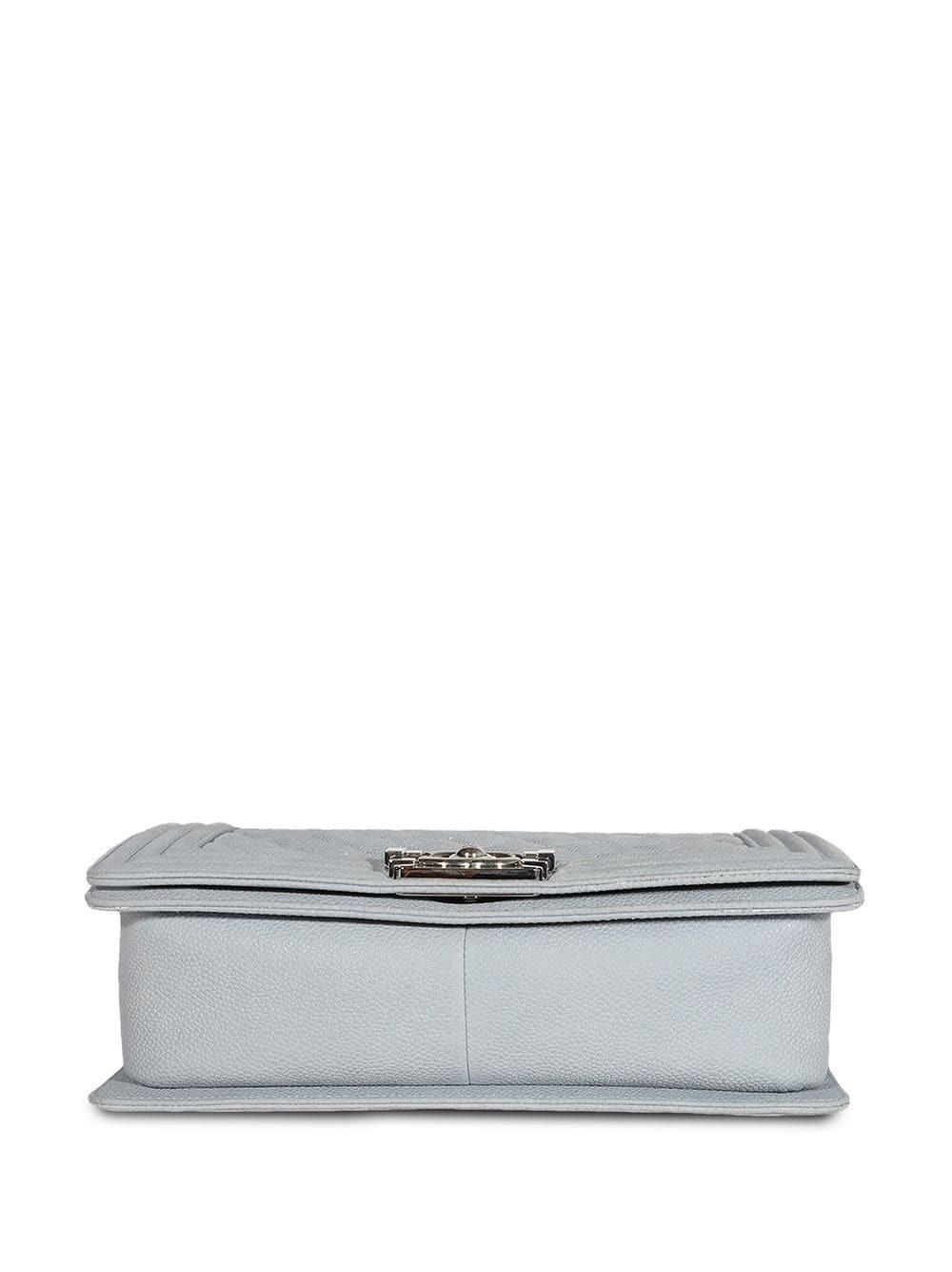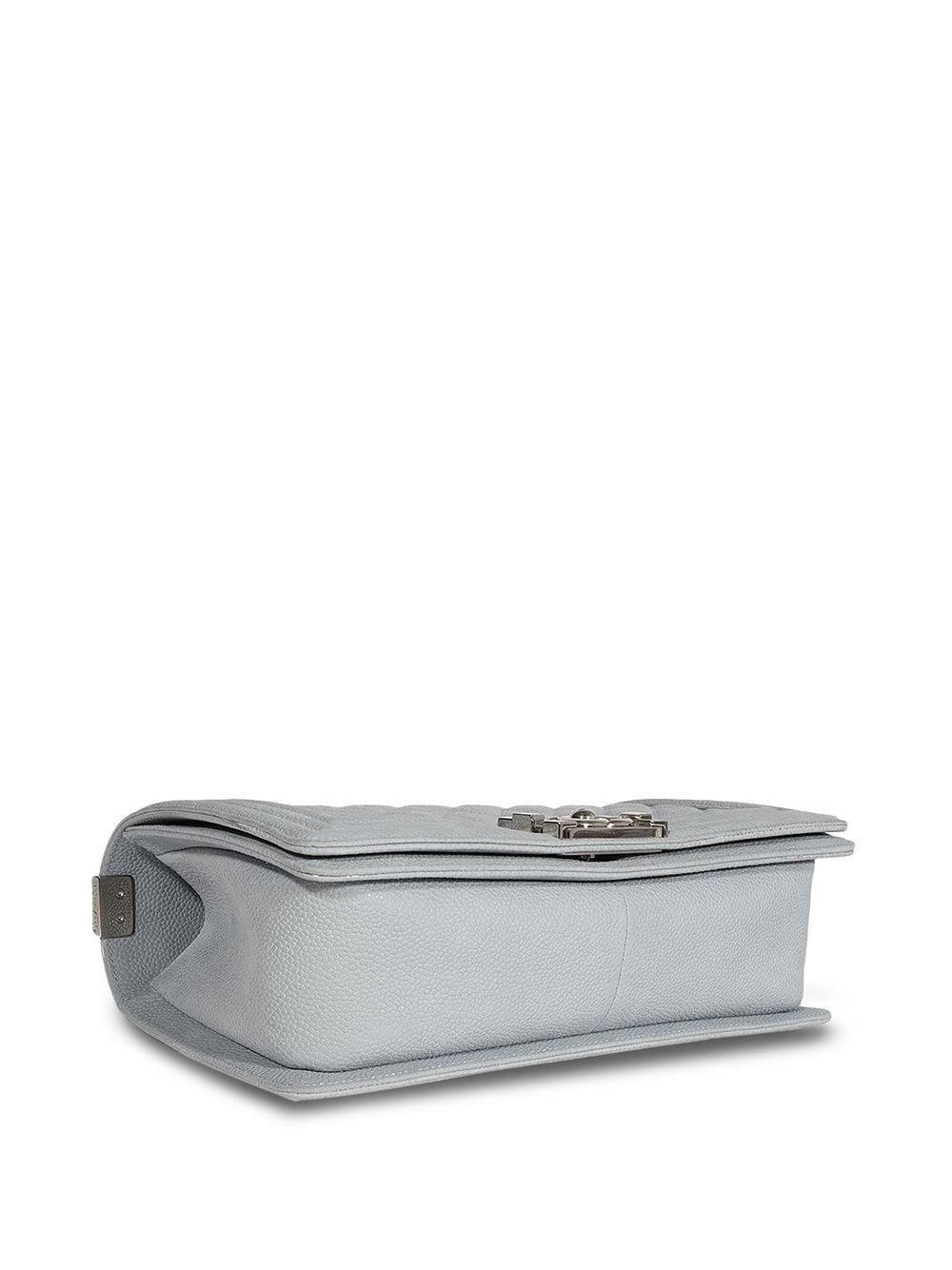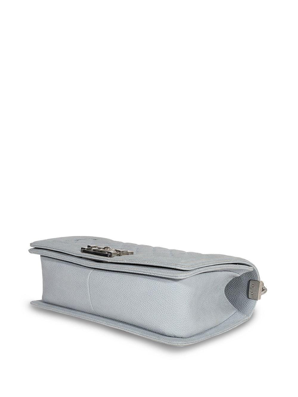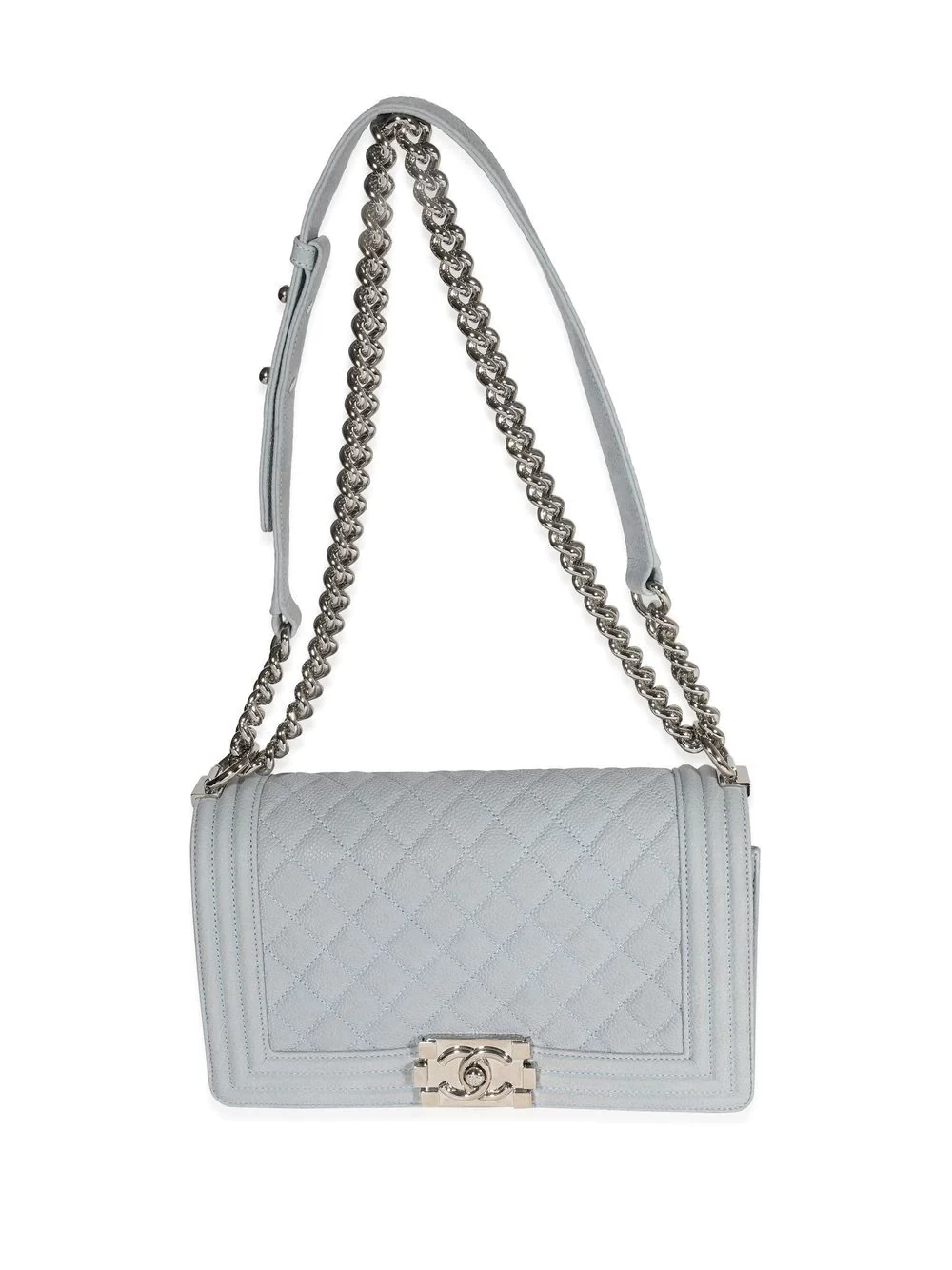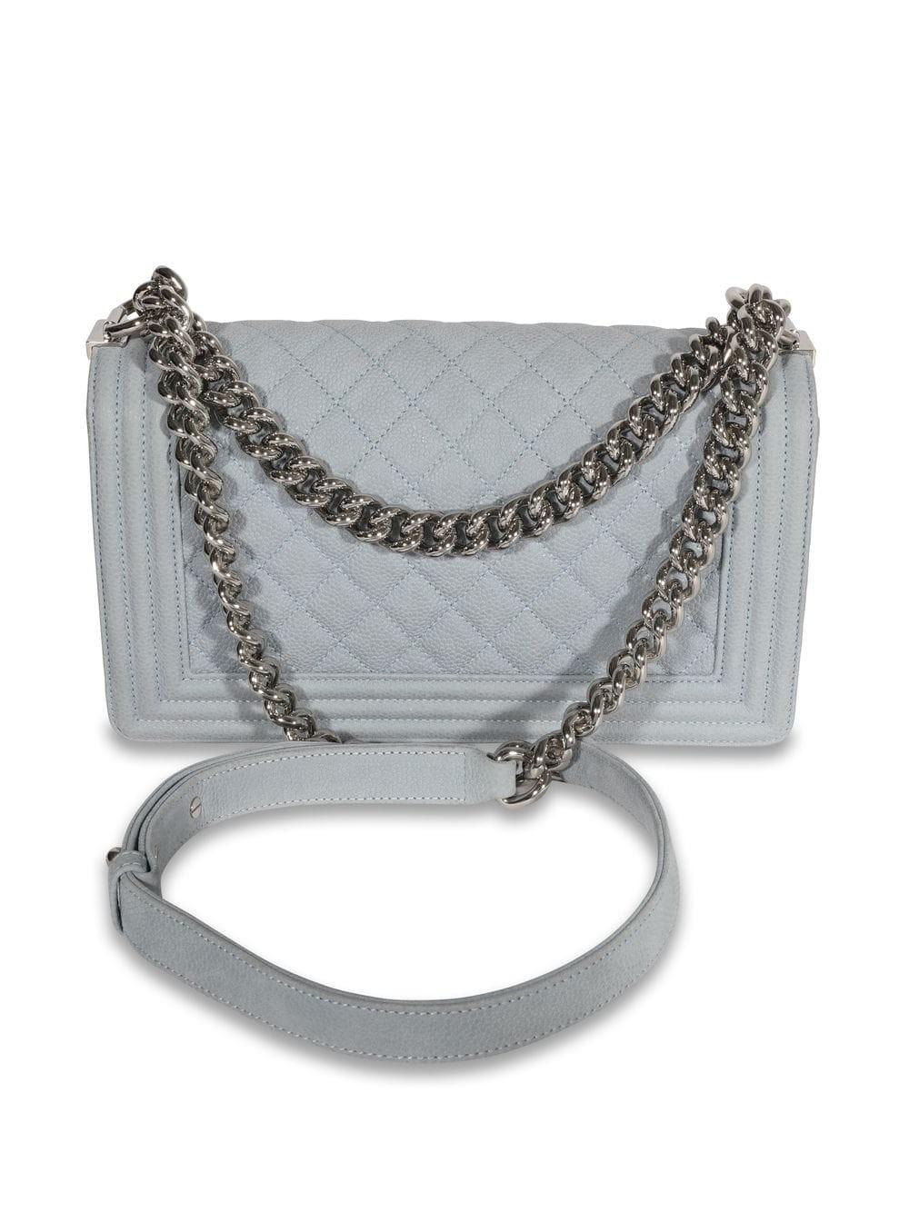 Ice blue, caviar leather, diamond quilting, iconic chain straps, front flip opening and closing, iconic Boy push buckle, main interlayer, built-in pocket, silver hardware accessories.