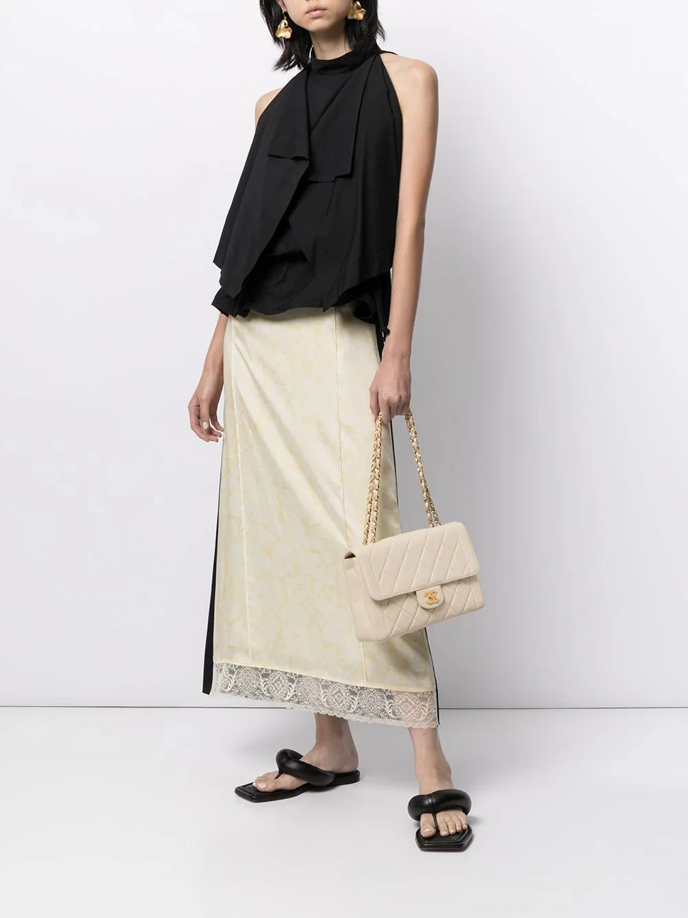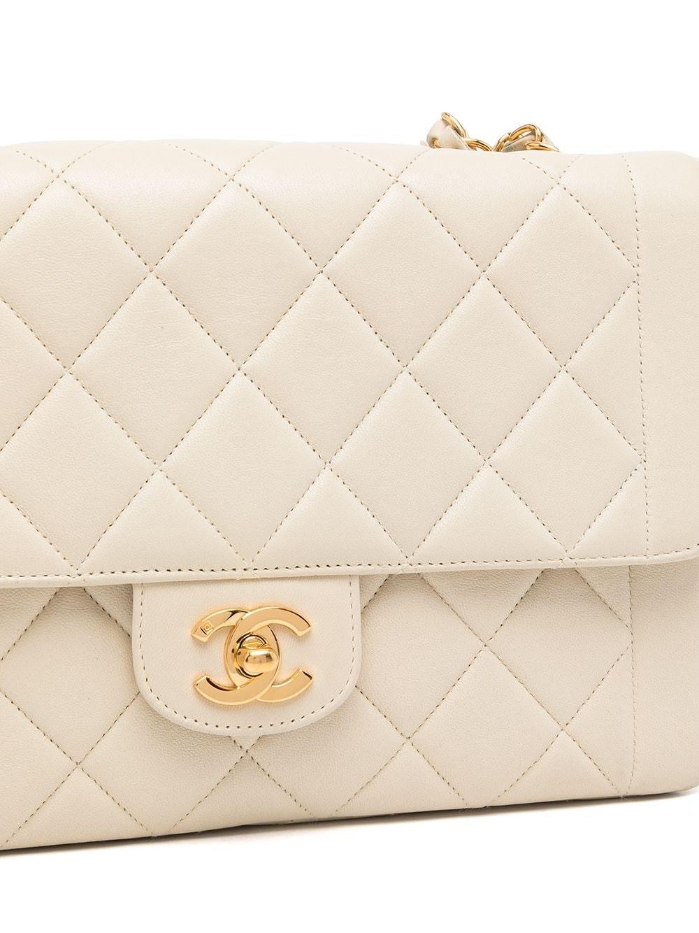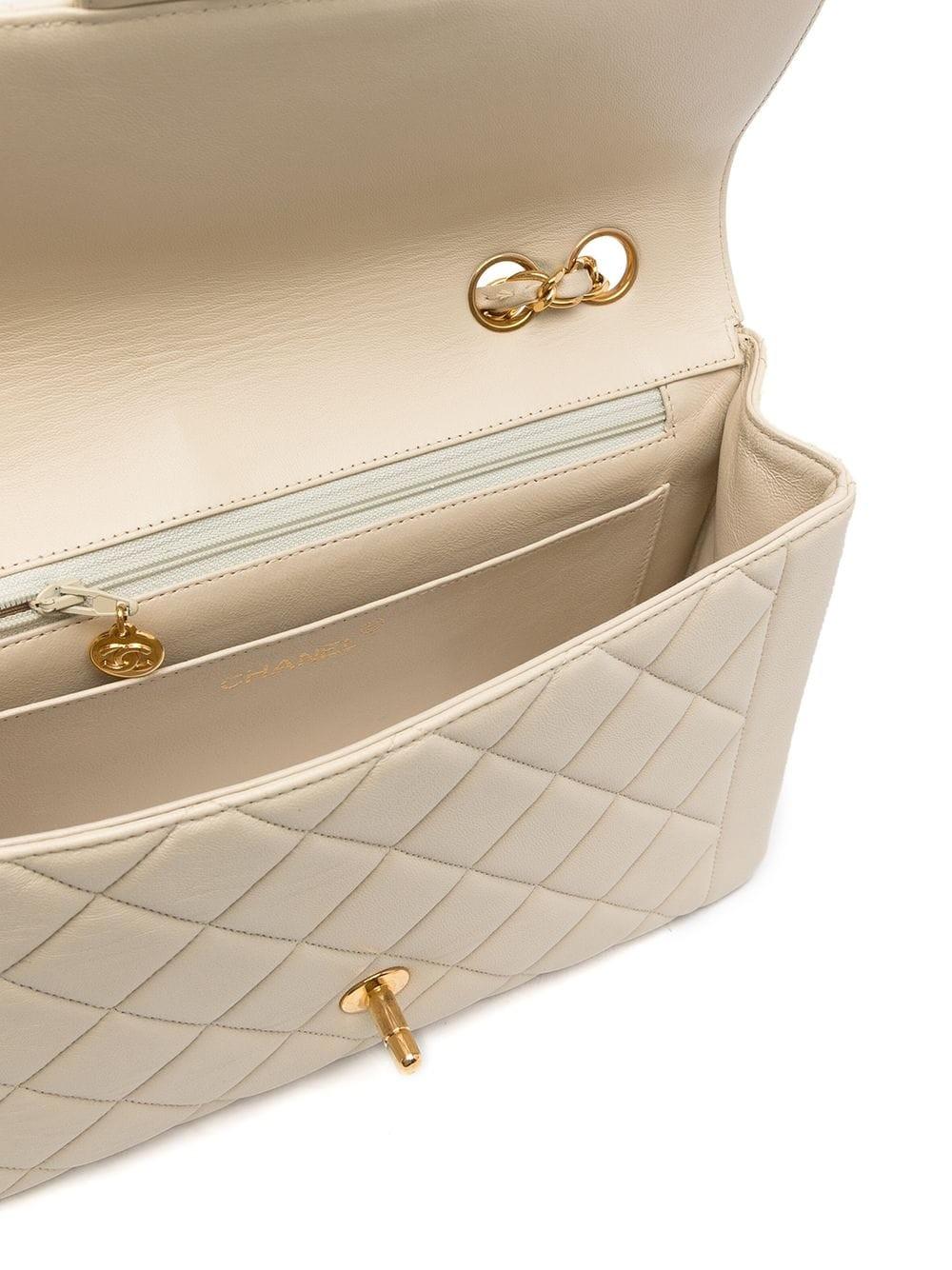 Paired with leather chain shoulder straps and the iconic CC buckle, this Classic Flap shoulder bag made of beige lambskin was born.
