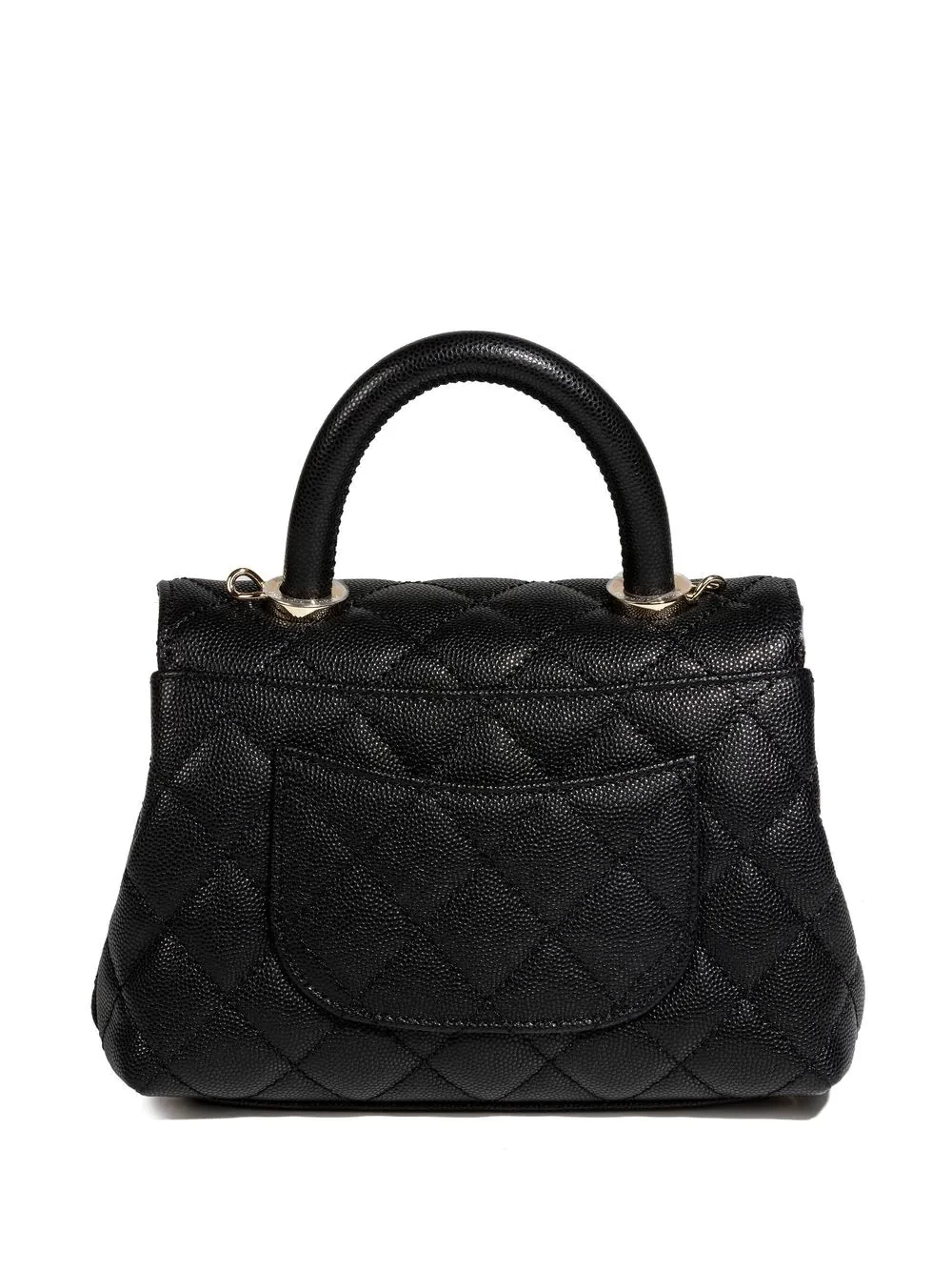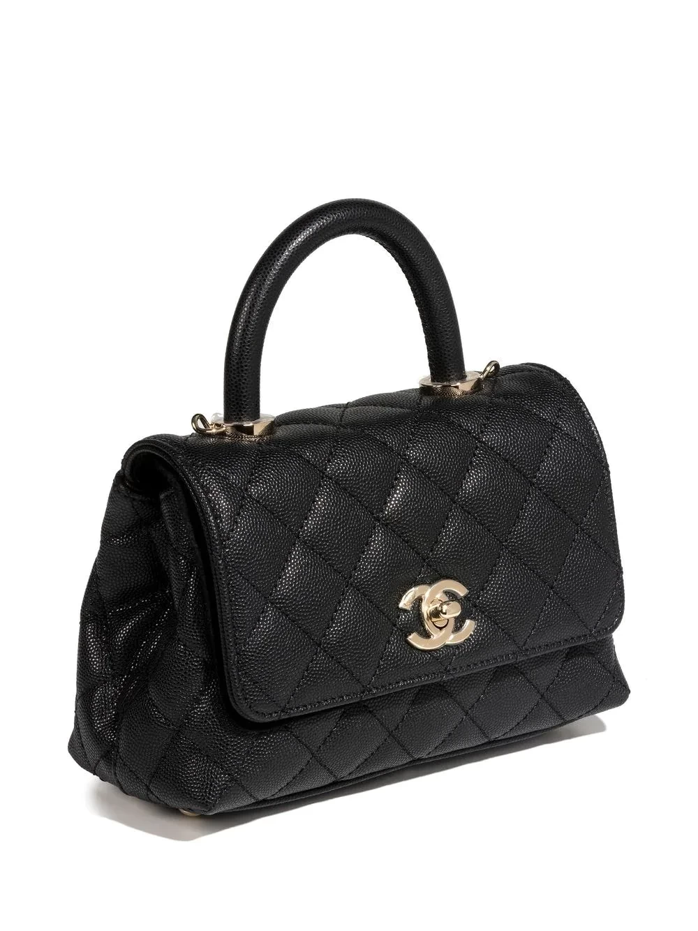 Black, caviar leather, iconic cross buckle CC buckle pendant, diamond quilting, a round handle, top flip, partition compartment, built-in zipper pocket, rear pocket, gold hardware accessories.