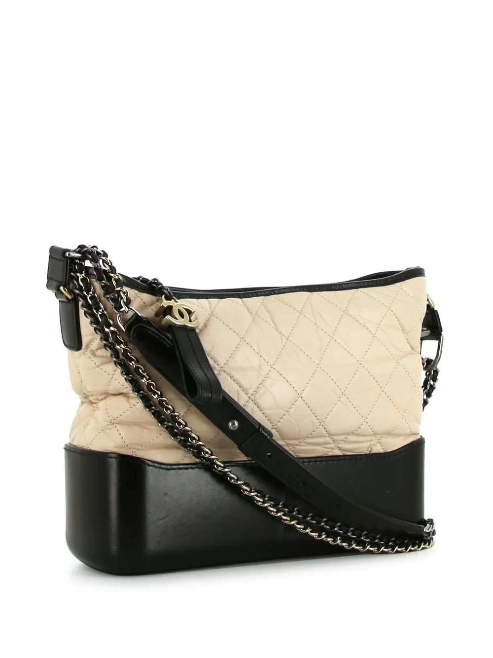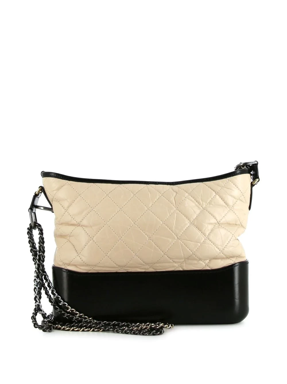This one-shoulder bag, named after Gabrielle Chanel, is the brand's classic signature style. The single product adopts diamond quilting design, showing a classic ivory white and black match. The product features two long shoulder straps in gold and silver hardware-one is a classic leather chain strap, and the other is a removable and adjustable leather strap.