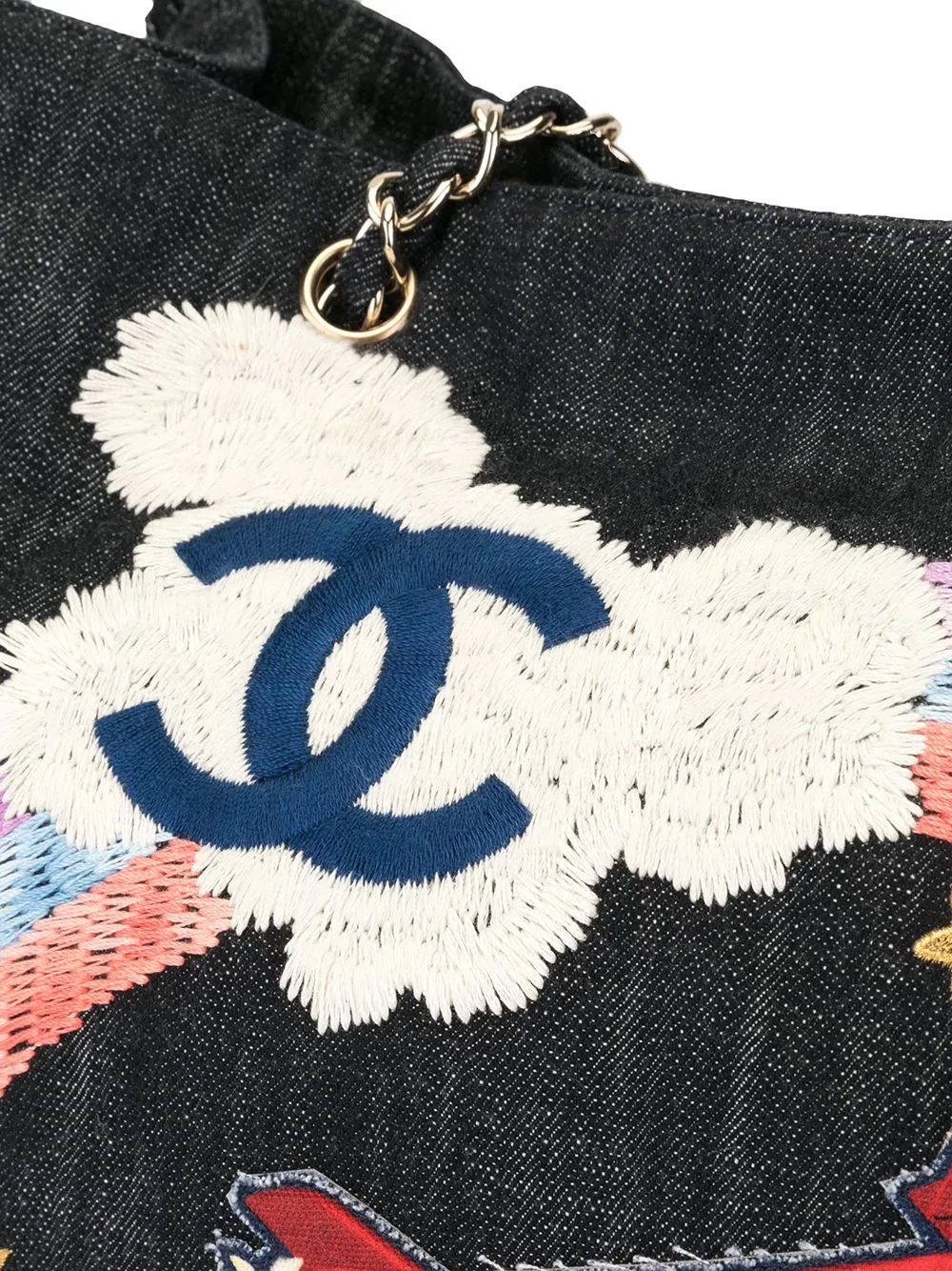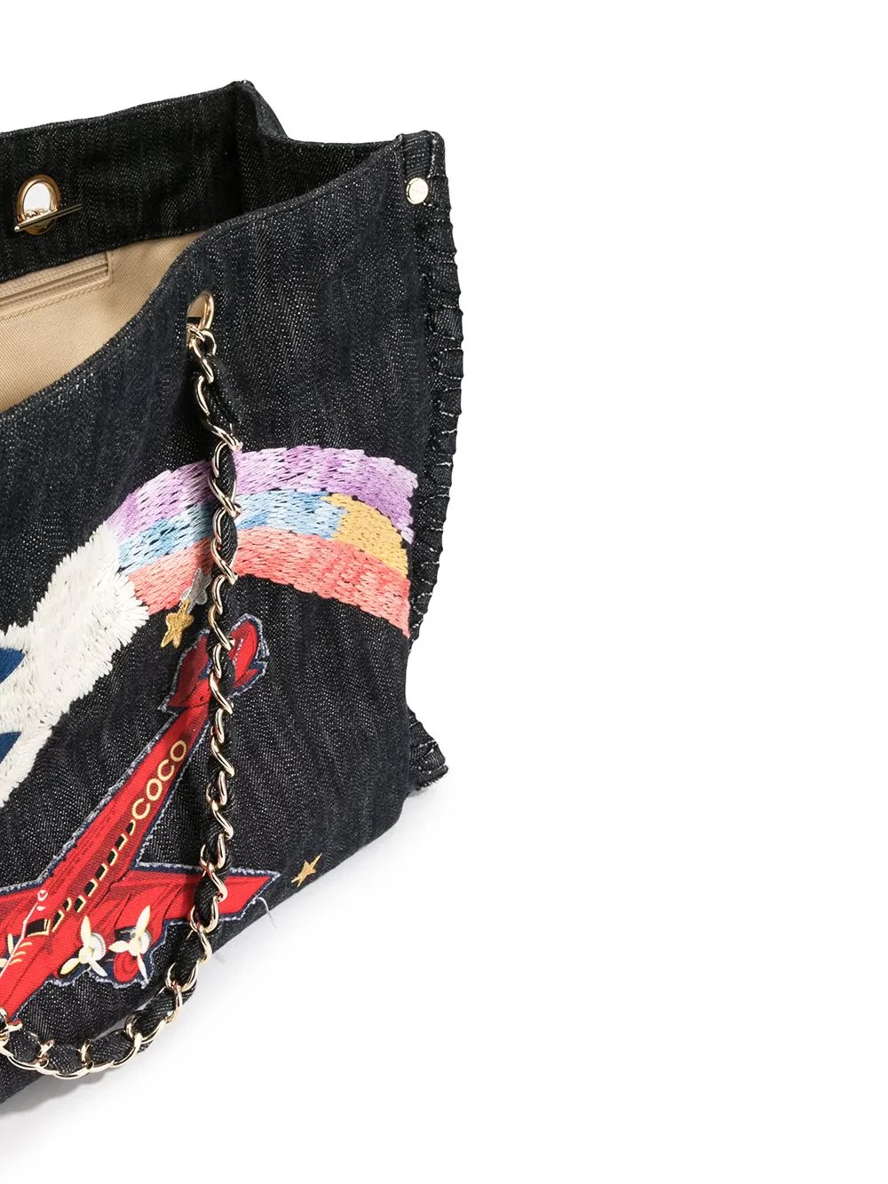 This black Jumbo XL rainbow plane embroidered Tott bag is from the Chanel collection.