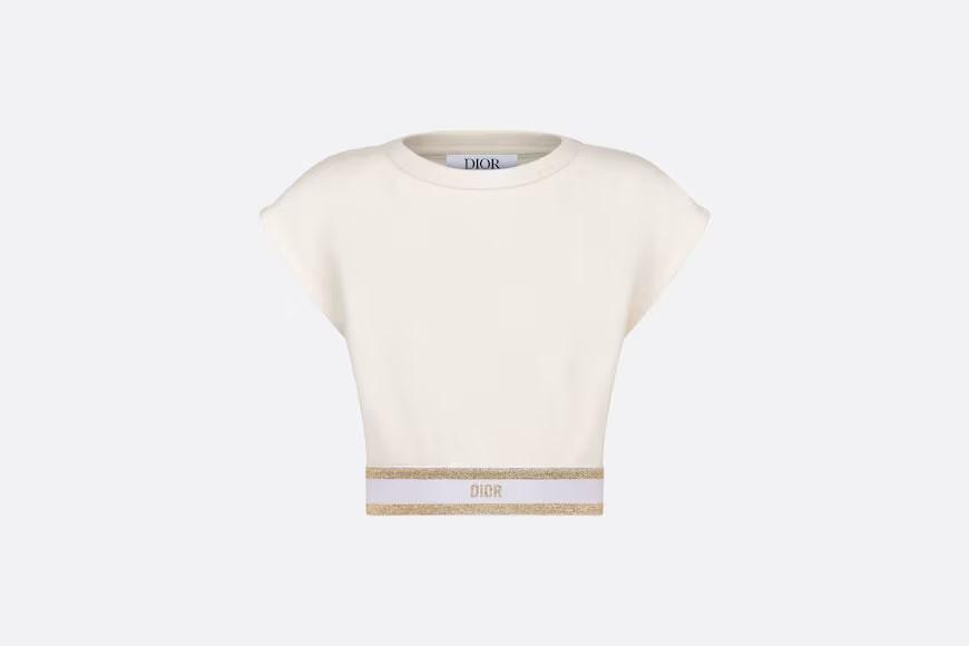 It is made of ivory cotton mixed to scratch the wool, and the undersex is marked with a gold Dior logo, and the waist is matched with a doll.