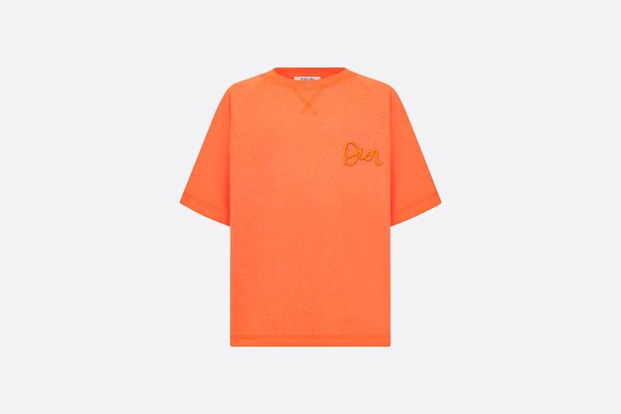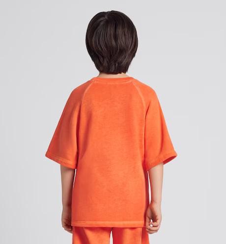 It is made of soft orange cotton mixed plain cloth, with a V-shaped field piece, and the front is covered with Dior cloth re-performed with glossy orange rubber.
