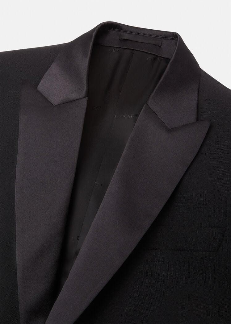 This single-breasted blazer is crafted from a wool and mohair blend for an elegant evening look. Designed in a tailored silhouette, it features a button closure and a peak collar.