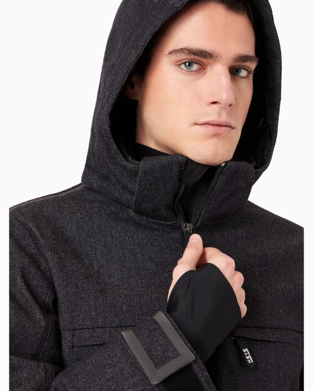 As part of the Giorgio Armani Neve capsule collection, this ski jacket is defined by a distinctive design. Made from technical, performance, water-repellent wool denim, it is crafted according to the highest standards.