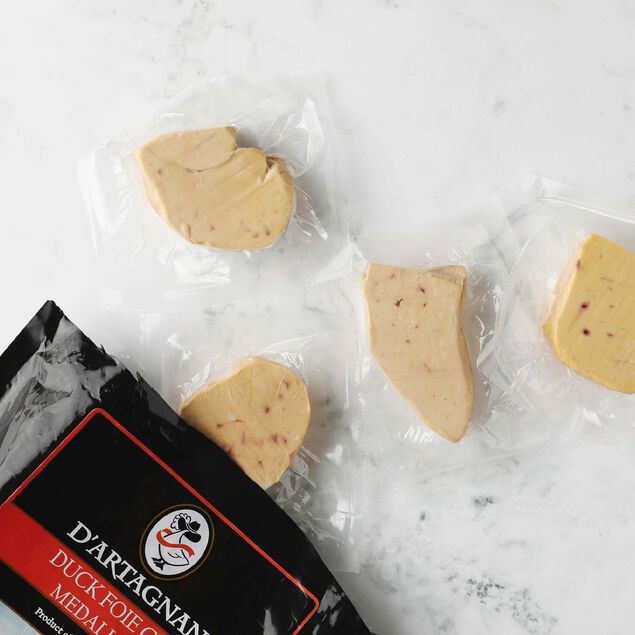 These Grade-A medallions of foie gras are laser cut into perfect single-serving size, then immediately frozen at extremely low temperatures. This retains the texture, integrity, and quality of the delicate foie gras. A favorite of pro chefs, these individually portioned medallions can be your dinner party secret. Keep them on hand in the freezer, ready for your next special occasion. Our foie gras comes from Moulard ducks raised on a farm in New York State, recognized as a premier producer of high-quality foie gras and duck products.
