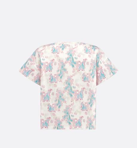 This T-shirt has a floral printing theme, with soft pink and pink colors.