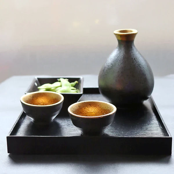 Jinpo Handcrafted Kinsai Gold Ochoko Sake Set with Wooden Box