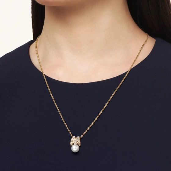 M Signature Akoya Cultured Pearl and Diamond Pendant in 18K Yellow Gold