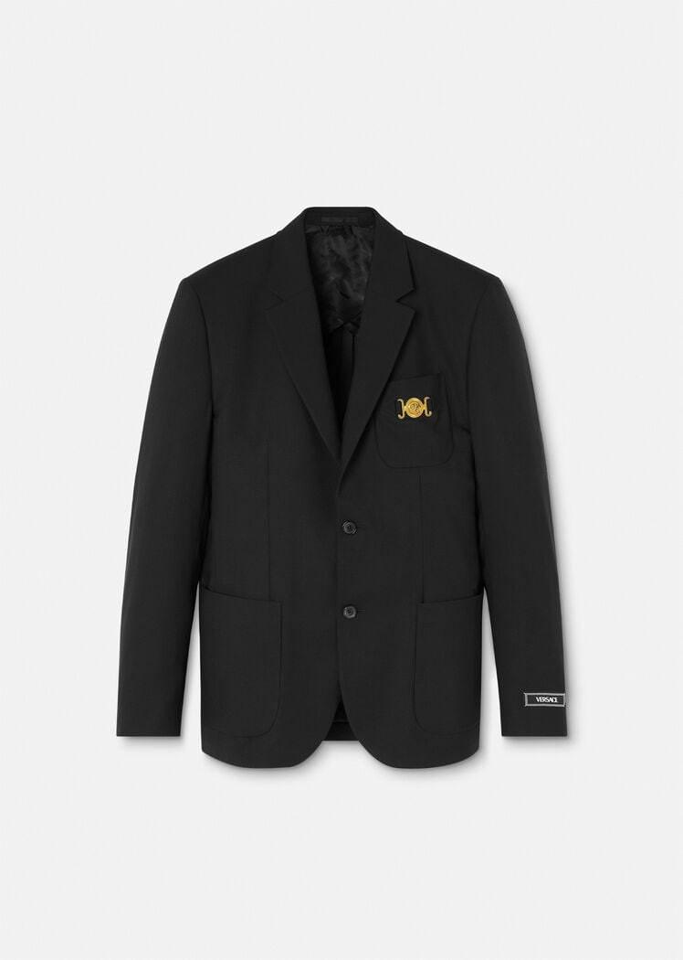 Single-breasted wool blazer with Medusa Biggie hardware on the breast pocket. Slim fit, half-lined, with Versace label on the cuffs.