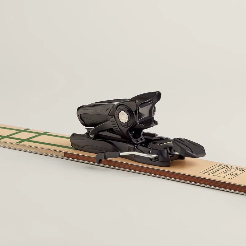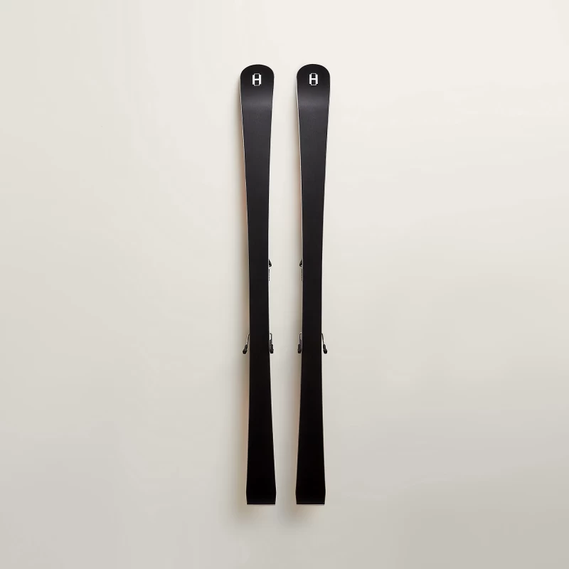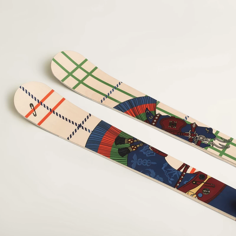 Pair of alpine skis in sycamore wood. The wood veneer is enhanced by the "Cheval Punk" design by Daiske Nomura. The skis are suitable for all ski levels and for a skier that is taller than 68 inches.