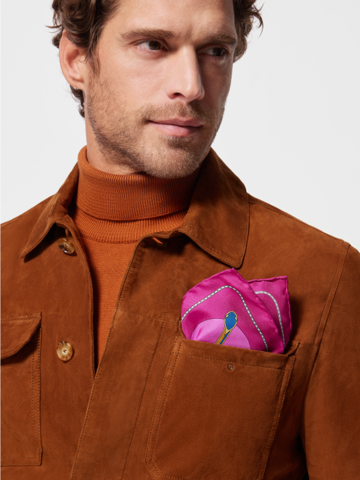 THE SERPENTI 75 SERIES PINK DELICATE PRINTED TWILL SILK POCKET SQUARE PAYS TRIBUTE TO THE 75TH ANNIVERSARY OF THE CLASSIC BULGARI SERIES THAT SYMBOLIZES ENDLESS TRANSFORMATION. THE PRECIOUS SNAKES ARE INTERTWINED AND INTERTWINED, WINDING AROUND THE ICONIC SERPENTINE CHAIN OF BULGARI BULGARI LEATHER WORKS-THIS PATTERN CLEVERLY INTERPRETS THE CREATIVE CHARM AND FASCINATING TRANSFORMATION OF THE SERIES FOR 75 YEARS. SMART AND TIMELESS, THIS ACCESSORY ADDS A TOUCH OF COLOR AND SOPHISTICATION TO ANY LOOK. 30 X 30 CM - 13 X 13 INCHES. 100% SILK TWILL. HANDMADE IN ITALY