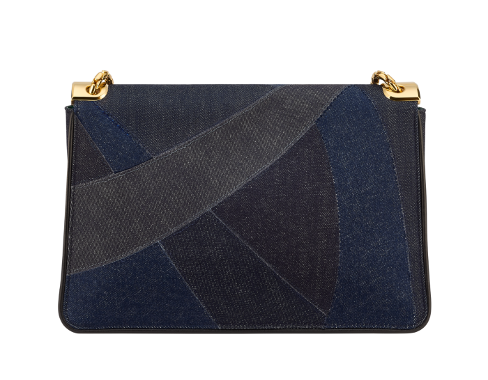SERPENTI FOREVER LARGE SHOULDER BAG IN BLUE PANELED DENIM, COMBINING FOUR THICK AND HIGH-QUALITY DENIM FABRICS TO FORM AN ABSTRACT PATTERN REMINISCENT OF LIGHT, WITH A GOLD-PLATED BRASS SERPENTINE FRAME INSPIRED BY THE BOLD AND UNRULY SERPENTI OF THE 1960S COLLECTION OF ANTIQUE COLLECTION NECKLACES. THE PIECE IS PAIRED WITH A SNAKE-SHAPED CHAIN SHOULDER STRAP AND DECORATED WITH A CLASSIC SNAKE HEAD MAGNETIC CLOSURE. ITS CHARMING SCALES AND DESIGN ARE INSPIRED BY THE SERPENTI JEWELRY SERIES IN THE 1960S, MAKING IT SUITABLE FOR EVERYDAY WEAR. FEATURES TWO COMPARTMENTS, AN INTERIOR ON-SEAM POCKET AND AN OPEN POCKET. 28.5 X 19 X 7.5 CM - 11.2 X 7.5 X 3 INCHES. MADE IN ITALY.