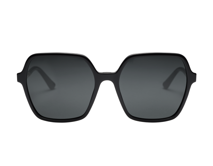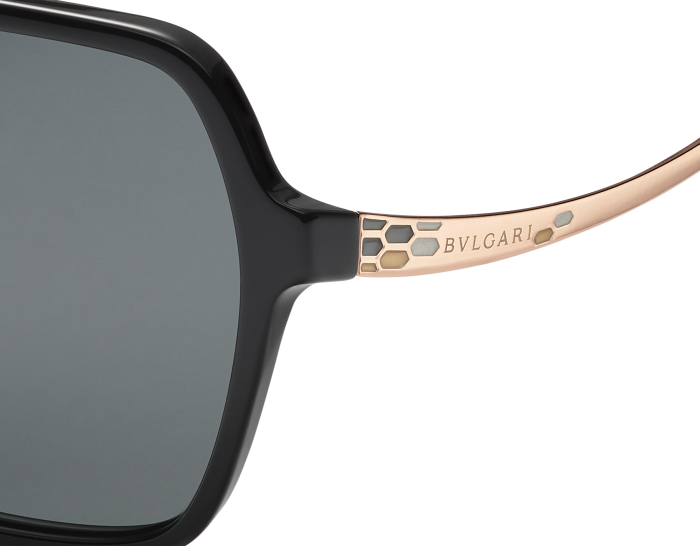 SERPENTI 'COLORHAPSODY' SUNGLASSES FEATURE A BLACK HEXAGONAL ACETATE FRAME WITH FULL BLACK LENSES. THESE SUNGLASSES HAVE A MESMERIZING KALEIDOSCOPE PATTERN OF ENAMELED MICROSCALE SCALES AT THE TEMPLES.