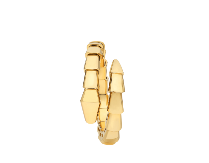 THE SERPENTI VIPER SERIES OF 18K GOLD RINGS INTERPRETS THE ENDLESS TRANSFORMATION AND CHANGE OF BULGARI'S CLASSIC WORKS IN AN ULTRA-MODERN WAY. THE CHARMING DESIGN SHOWS SIMPLICITY AND SENSUAL LAZINESS. THE RING COMBINES GRACEFUL SHAPE AND GEOMETRIC STYLE, LINGERING ON THE FINGER, AND THE DELICATE SCALES SHINE WITH LUSTER.