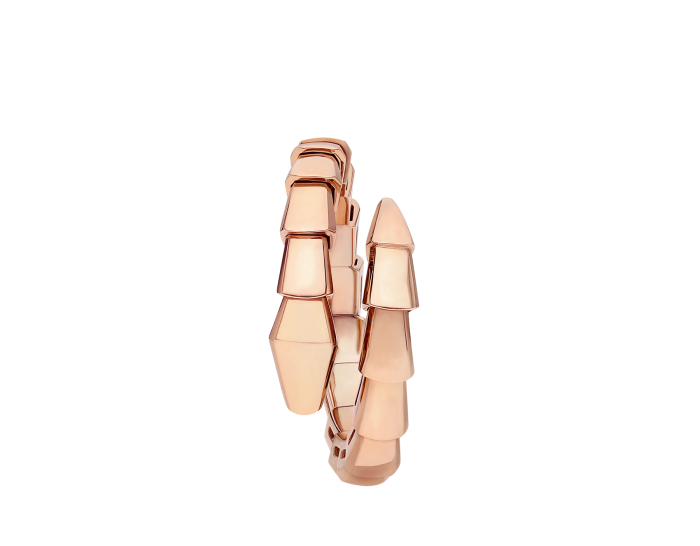 THE SERPENTI VIPER SERIES 18K ROSE GOLD RING INTERPRETS THE ENDLESS TRANSFORMATION AND CHANGE OF BULGARI'S CLASSIC WORKS IN AN ULTRA-MODERN WAY. THE CHARMING DESIGN SHOWS SIMPLICITY AND SENSUAL LAZINESS. THE RING COMBINES GRACEFUL SHAPE AND GEOMETRIC STYLE, LINGERING ON THE FINGER, AND THE DELICATE SCALES SHINE WITH LUSTER.
