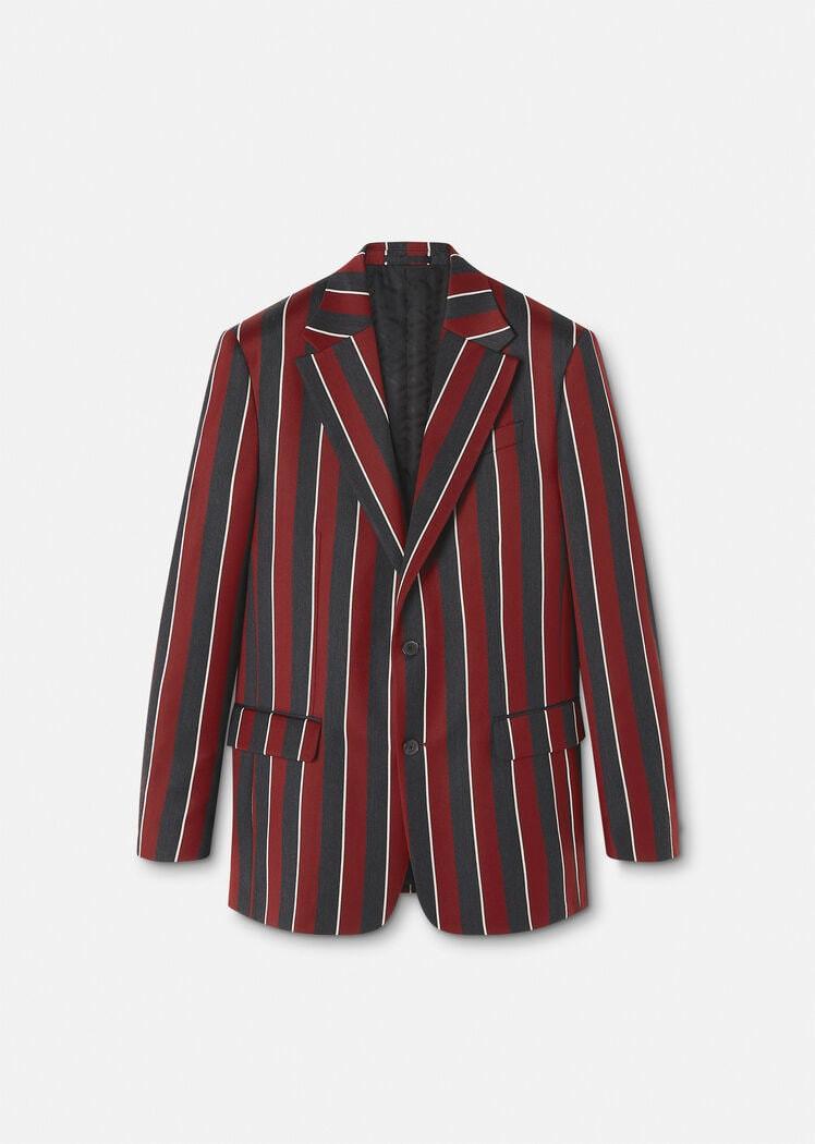 Fully lined, this single-breasted wool blazer features Regimental Stripes and a notch collar.