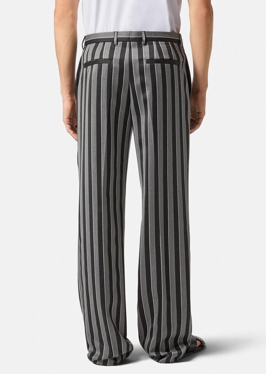 Made from virgin wool, these trousers have a fluid wide-leg fit and feature Regimental Stripes throughout. They have hidden hook and zip closures for a clean fit.