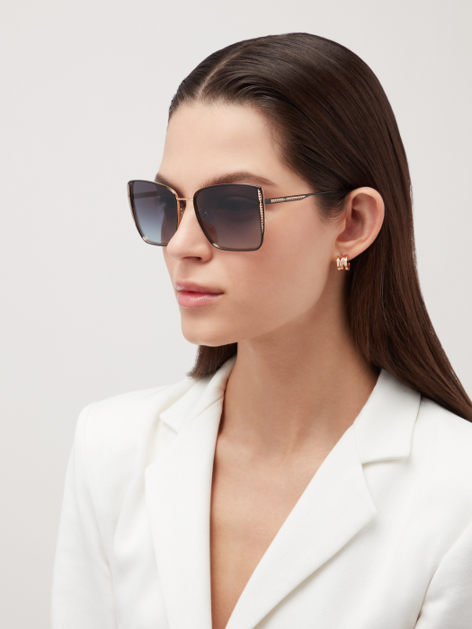 B.ZERO1 'ROCK' SUNGLASSES WITH SQUARE METAL FRAME AND GRAY LENSES. ROSE GOLD-TONE METAL STUDS, INSPIRED BY THE ICONIC B.ZERO1 ROCK JEWELLERY, COMPLEMENT THE LIGHT STRUCTURE FOR A UNIQUE STATEMENT