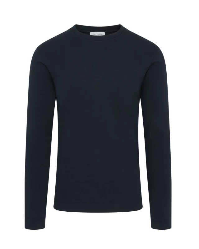 The Zattura High Collar Long Sleeve Supima Cotton T-Shirt in Navy combines refined design with superior comfort. Made from premium Supima cotton, it offers a soft, breathable feel and lasting durability. The high collar adds a modern, distinctive edge, while the tailored fit enhances your silhouette. This versatile piece is perfect for layering or wearing alone, providing both style and practicality for the discerning wardrobe.